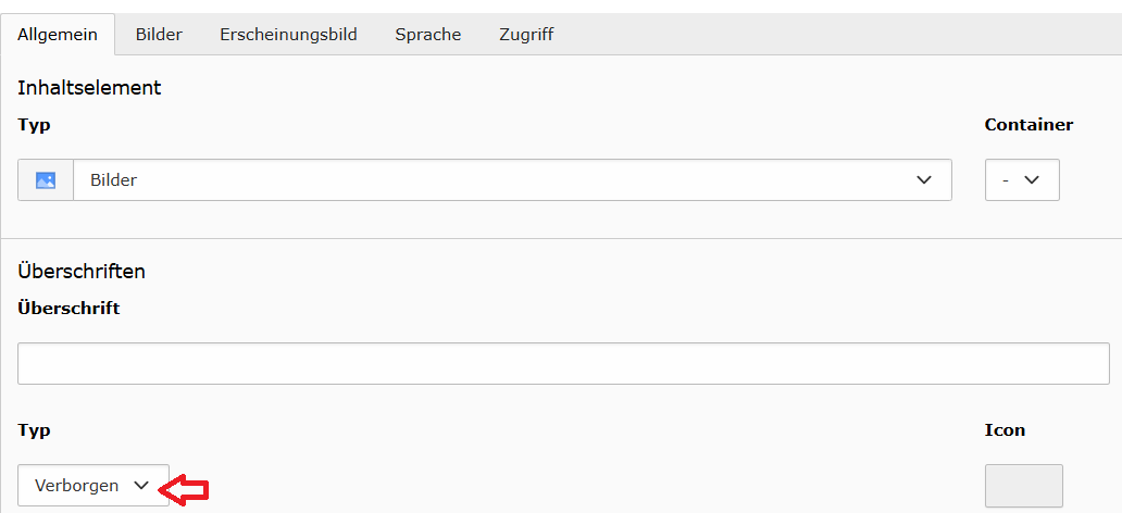 - Das Bild soll in den Inhaltsbereich und die Seitenspalte ist ausgeblendet: Wert kann leer bleiben