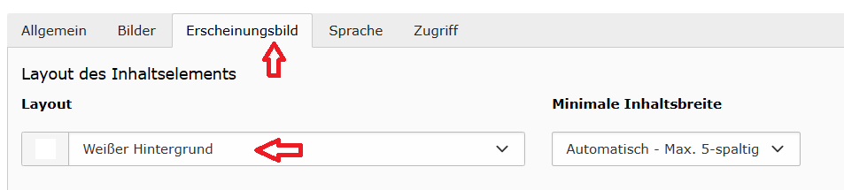 Es ist möglich den Kasten und den Innenabstand zu verbergen, um ein Bild über die gesamte Breite einzufügen. Dafür ist das folgende Vorgehen anzuwenden: